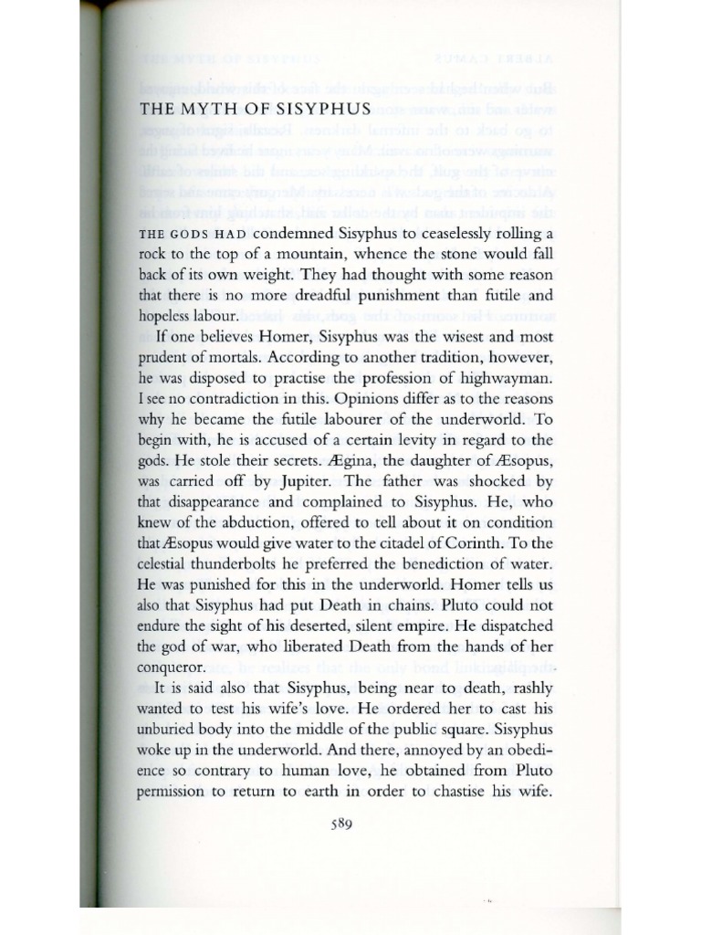 Lou takes a trip to fargo; Although sisyphus helped its city become a commercial hub and invested in navigation, he was a sly and deceitful person. Other books related to the myth of sisyphus. In this essay, the writer has allegorically presented sisyphus as the symbol of humankind and his task. The myth of sisyphus is one of the most known myths in the greek mythology, due to the cunningness of sisyphus and the punishment that was awaiting him.